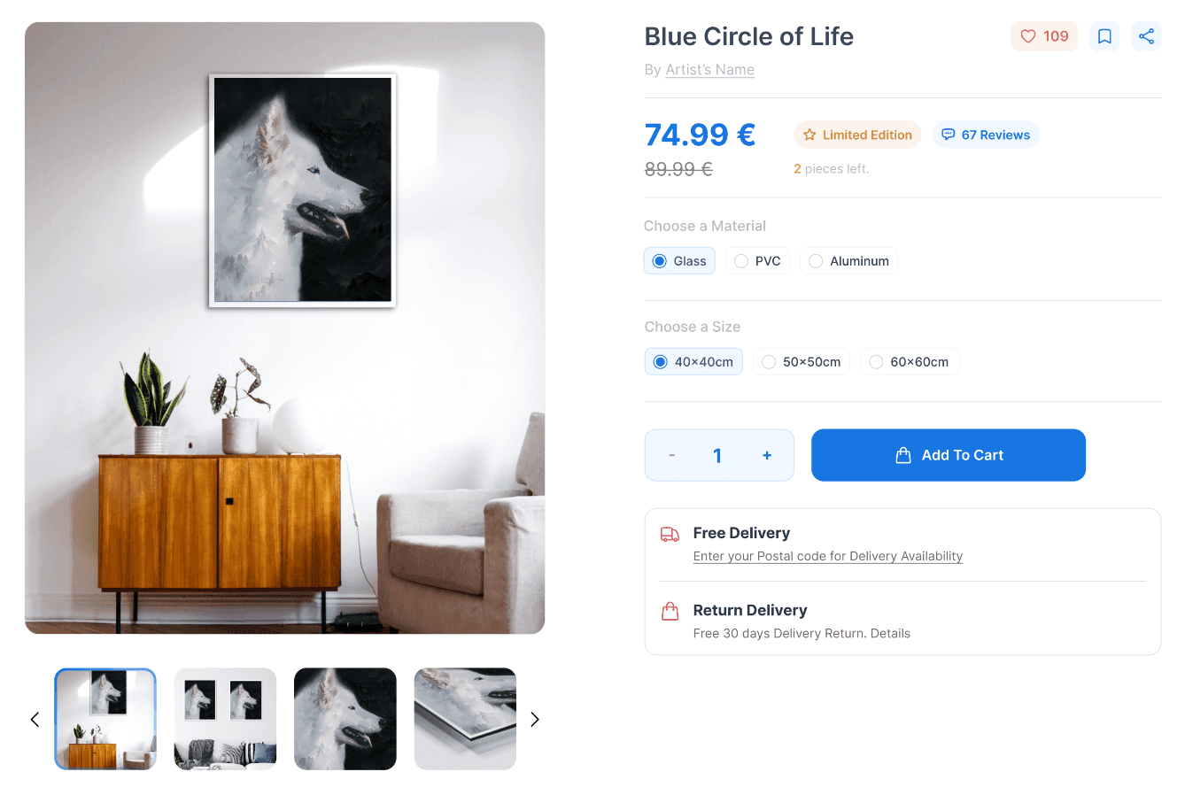 We take care of the entire shipping process for you! When a customer purchases your artwork, we handle the packaging, printing, and shipping logistics. Our reliable shipping partners ensure that your artwork is delivered safely and on time to your customer's doorstep. You can track the status of your orders and provide exceptional customer service without the hassle of managing shipping yourself.